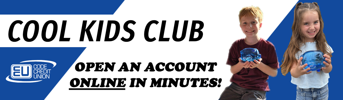 Start Your Child on the Path to Financial Success with CODE’s Cool Kids Account! OPEN AN ACCOUNT ONLINE TODAY AND RECEIVE A COOL KIDS PIGGY BANK!